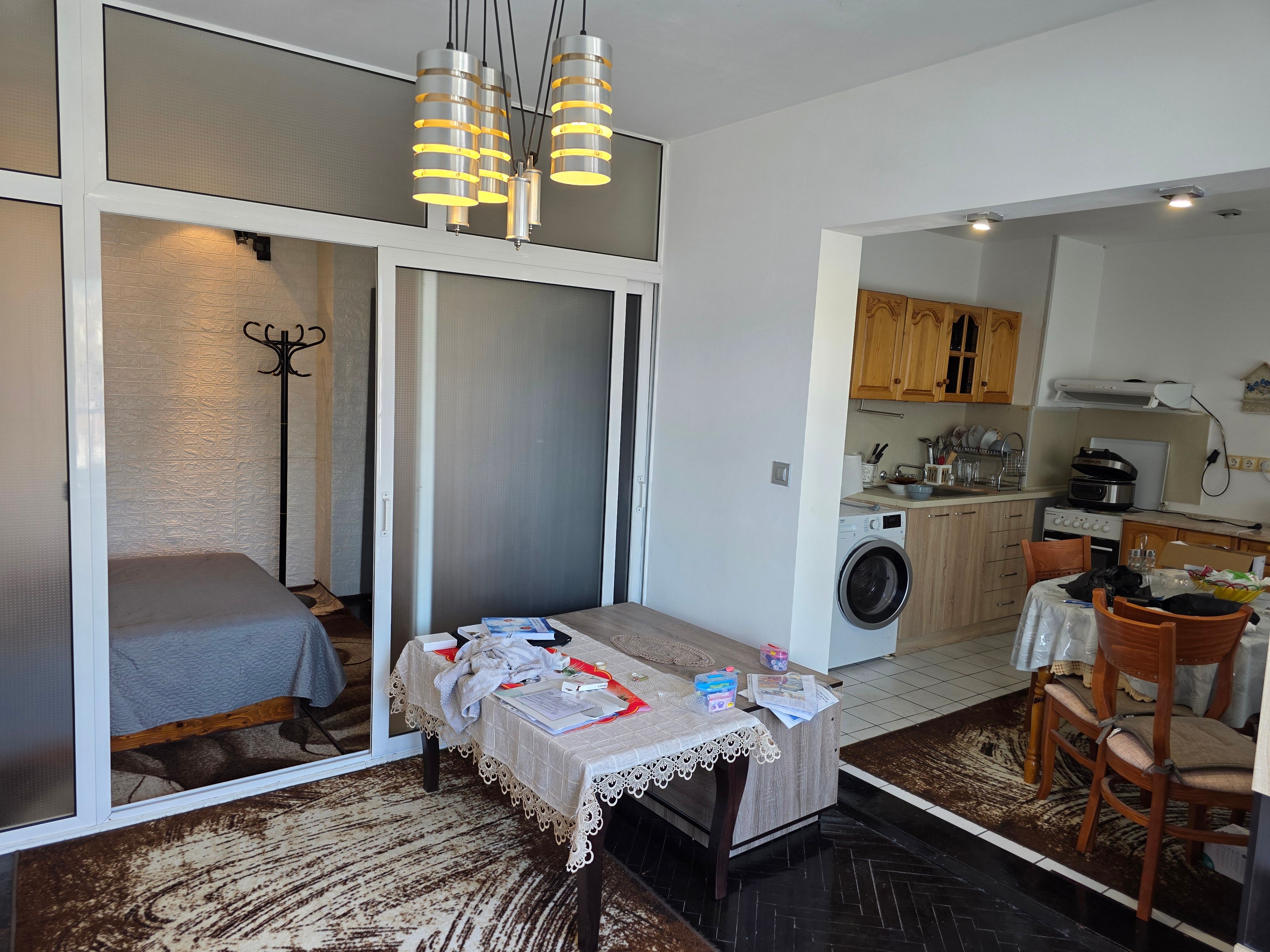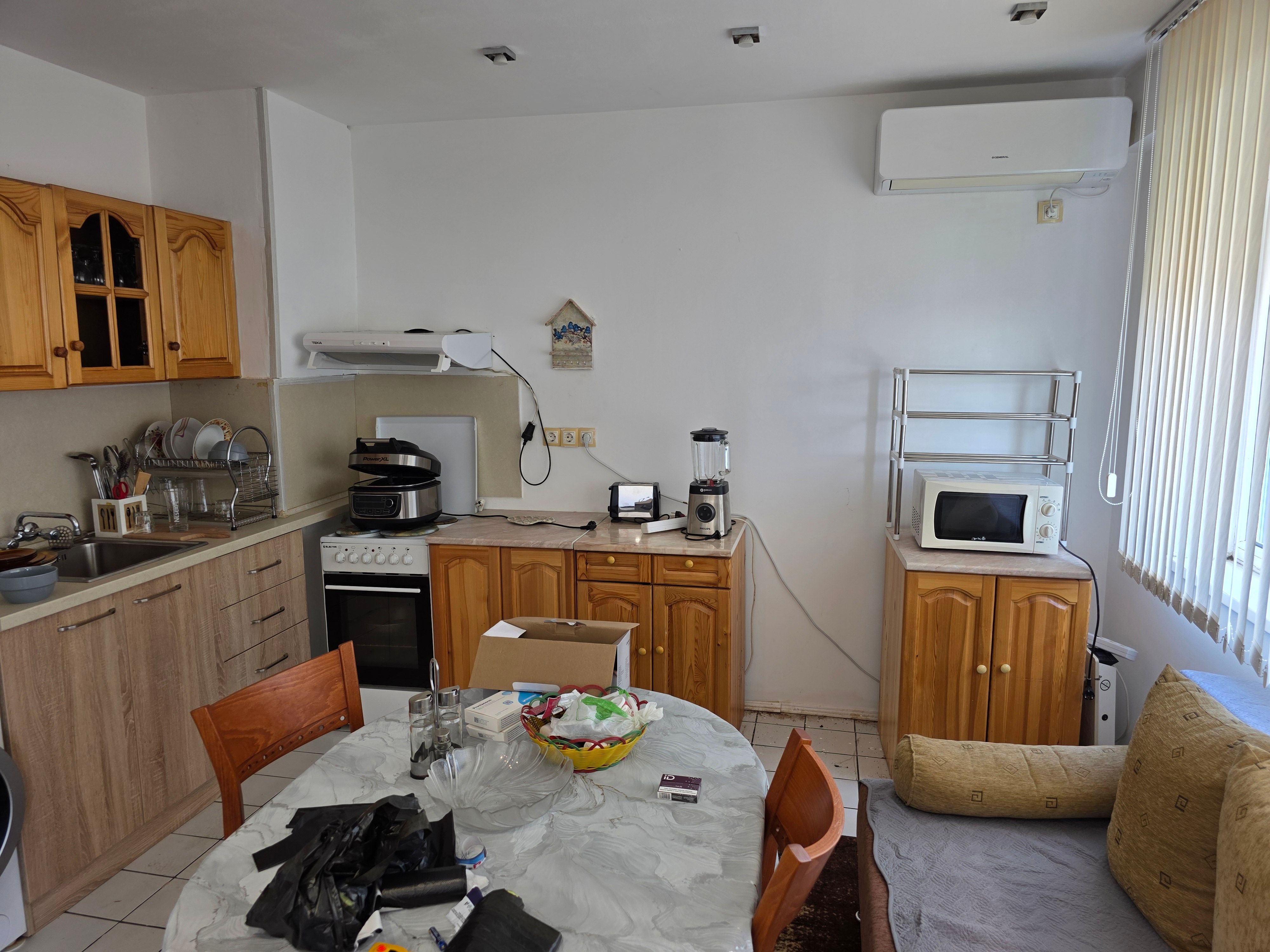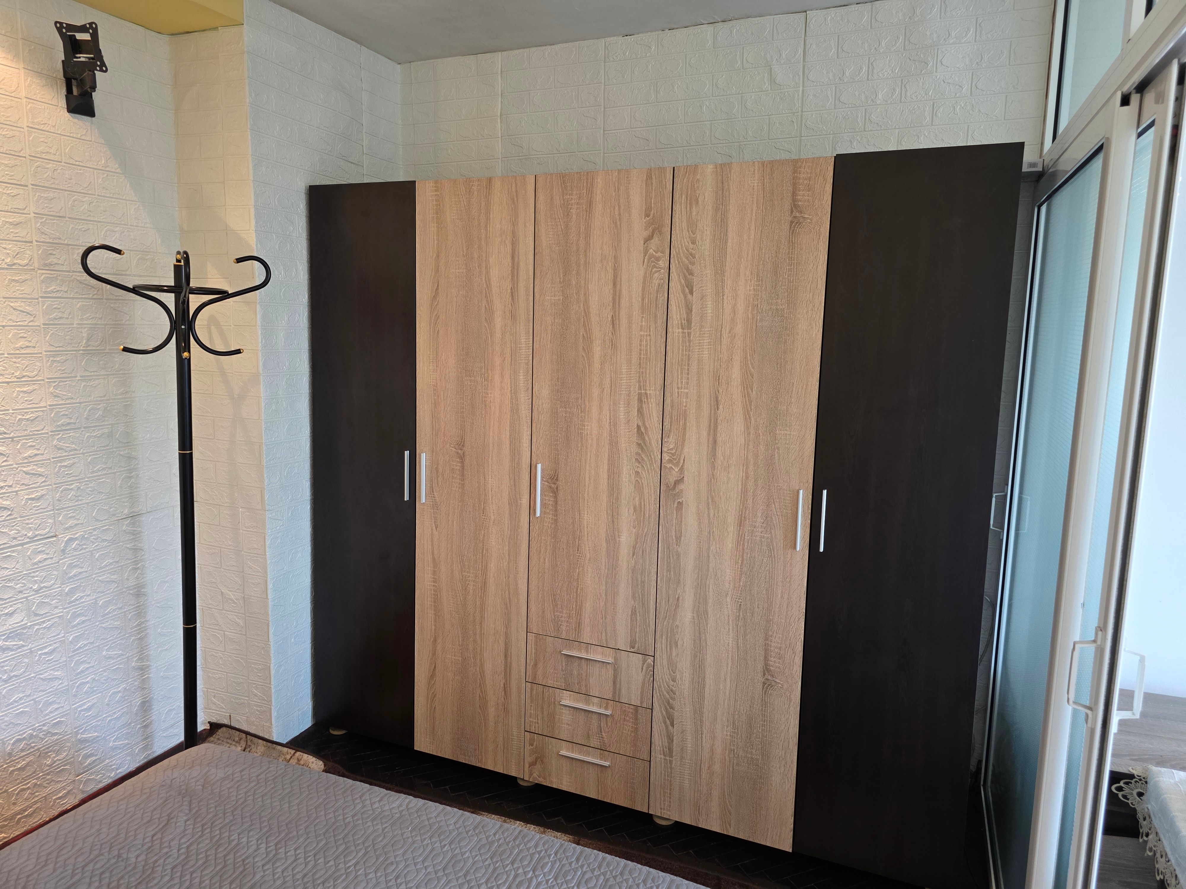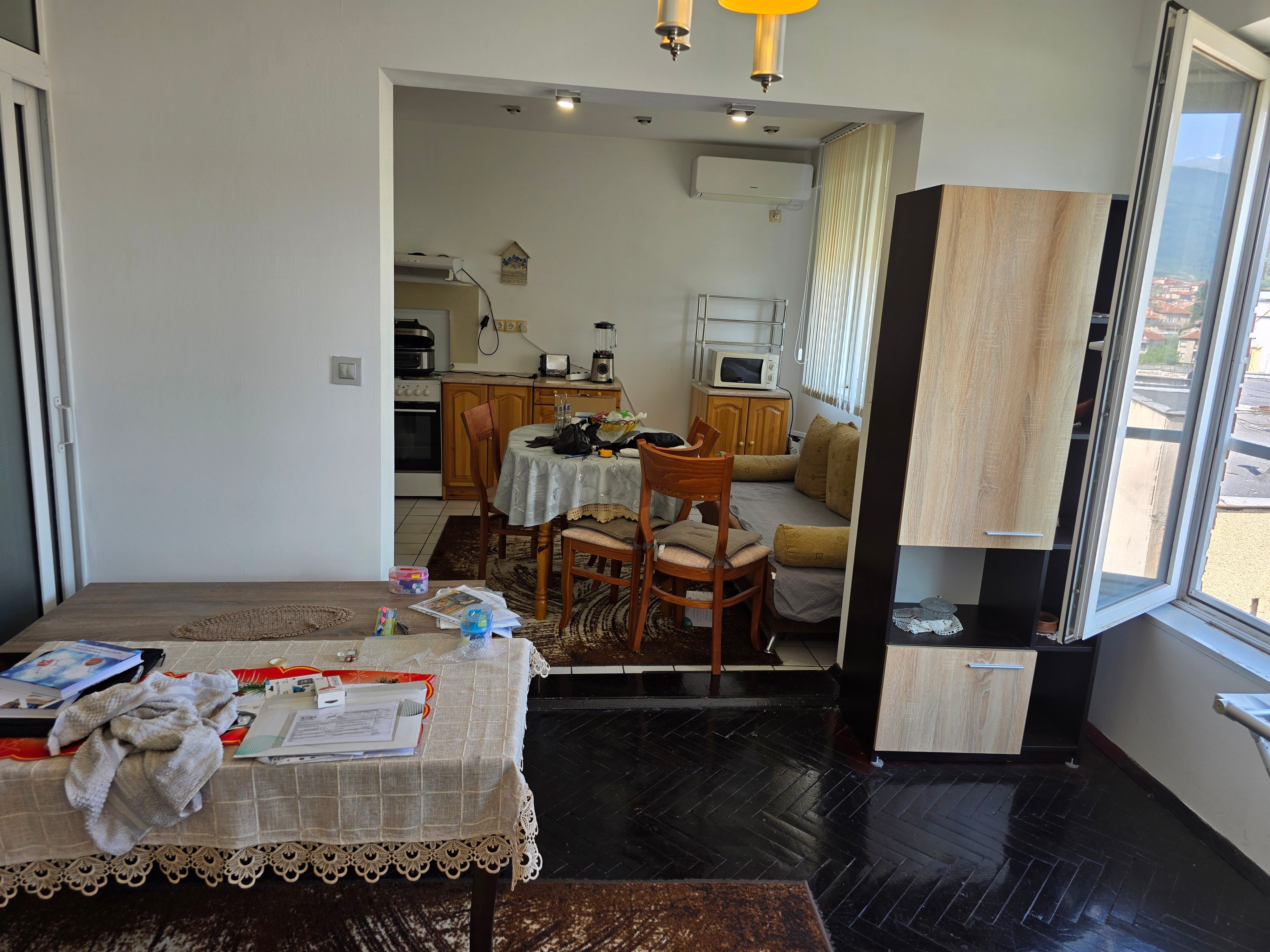 Едностаен апартамент 46кв.м., ет.10, последен, панел.Състои се от голяма кухня, всекидневна - преградена за спалня, баня, тоалетна, коридор , голямо входно антре.Намира се в ж.к."Яворов".Сменена дограма, паркет и теракот.Нова входна врата, външни и вътрешни щори. Предлага се частично обзаведен.
